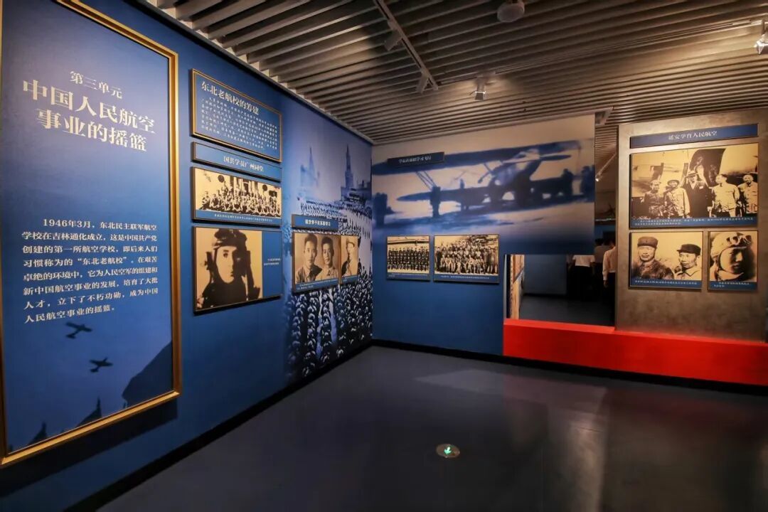 第八展区——新中国的三个摇篮:系统展示吉林的“三摇篮”红色标识,新中国汽车工业的摇篮、新中国电影事业的摇篮、中国人民航空事业的摇篮。