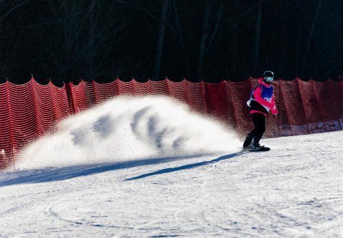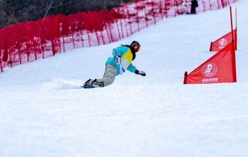 本届粉雪联赛启幕当天,第一场分站赛在中旅松花湖度假区举行。赛场上,各位选手驭板而下,展示着运动的速度和技巧,风驰电掣间展开激烈较量。