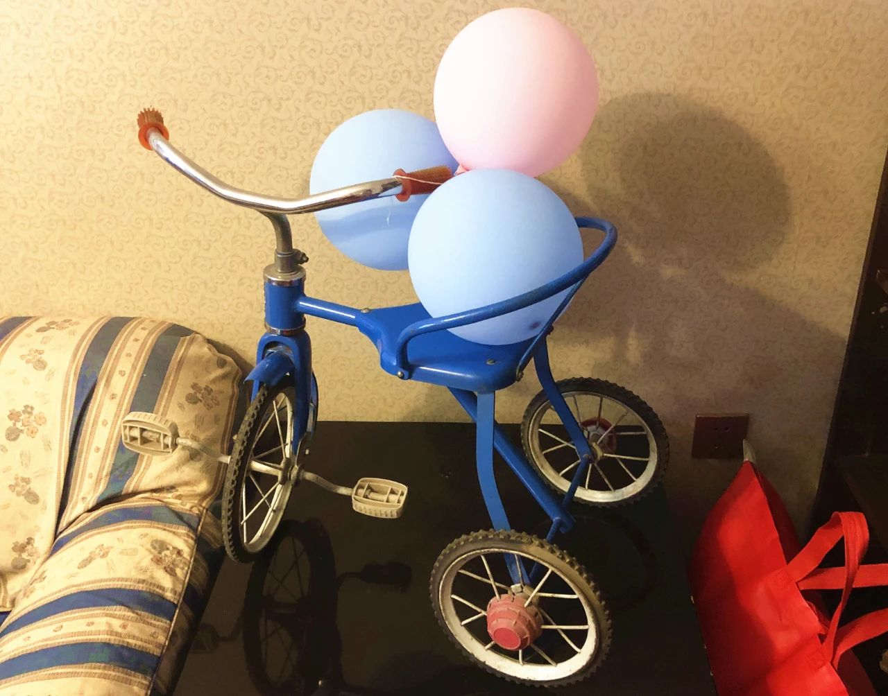 母子相认的当天晚上,毛寅跟着李静芝回到了西安的家。为了迎接他,李静芝提前买来彩带、拉花,把家里布置得喜气洋洋。沙发旁边的茶几上摆着毛寅小时候骑过的三轮车,车座上装饰着气球,车身被擦得锃亮,像一件展览品。