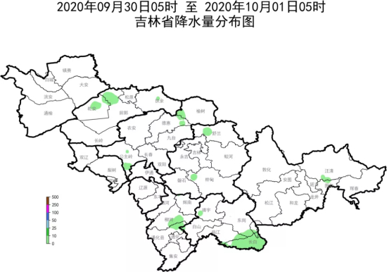 中国吉林网从吉林省气象部门获悉,昨夜开始,我省多地已出现降水天气。09月30日05时-10月01日05时, 我省东南部出现分散降水。全省平均0.1毫米,地区:白山0.4毫米,其他地区不足0.1毫米。降雨量前十位为:通化县兴林镇7.6毫米,长白南尖头村5.9毫米,长白两江屯4.4毫米, 长白马鹿沟镇4.3毫米,长白4毫米,长白十七道沟村3.5毫米,长白十四道沟镇3.4毫米,长白龙泉镇3.2毫米,长白十五道沟村3.1毫米,长白绿江村3.1毫米。
