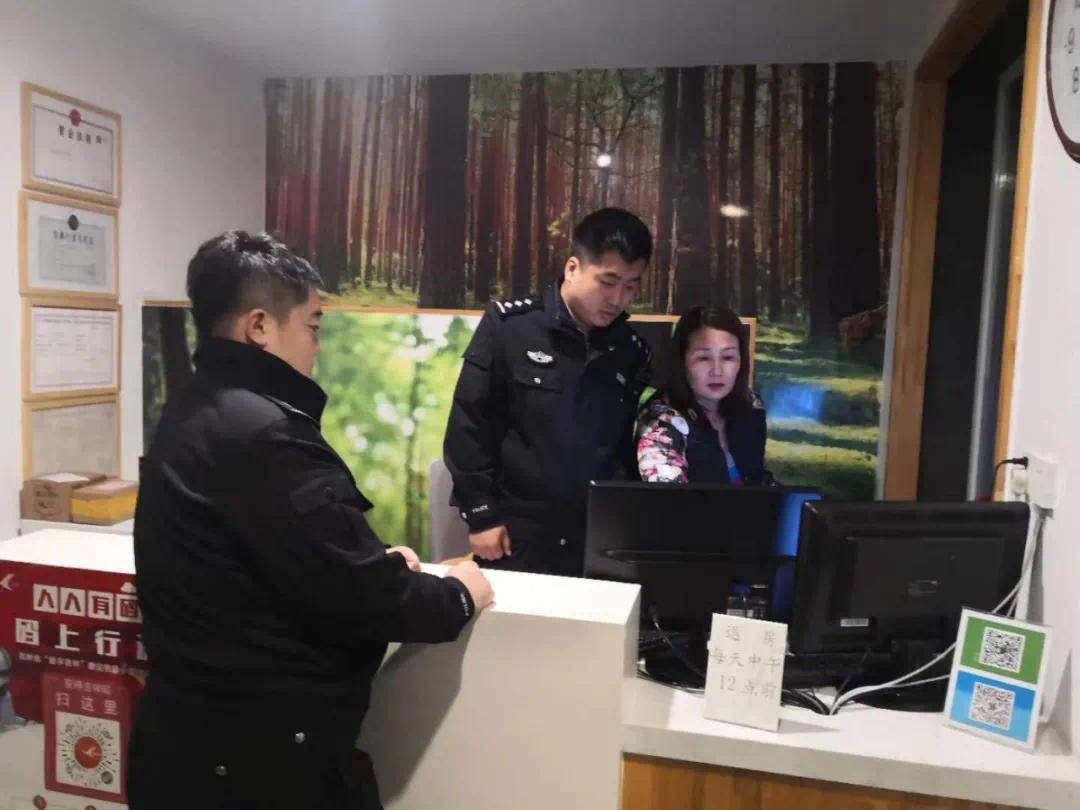 在旅店业民警对旅馆业的证照、消防安全防范措施、人像识别系统、监控设施及储存时效、治安警示标语张贴等情况进行了详细检查,对入住人员进行了核查,确保旅馆业规范管理,坚决杜绝住宿不登记、一人登记多人住宿、本人登记他人住宿等情况发生。