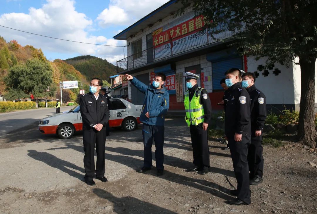 在抚松县,吴跃岩同志一行先后来到抚松派出所、抚松镇中心街驻村警务室、中心街村路口交警执勤点、兴隆交警执法服务站、万达度假区景区进行督导检查,详细询问了辖区交通安全管理情况、长假期间游客数量、路面勤务安排情况,实地查看了各项工作台账和簿册。