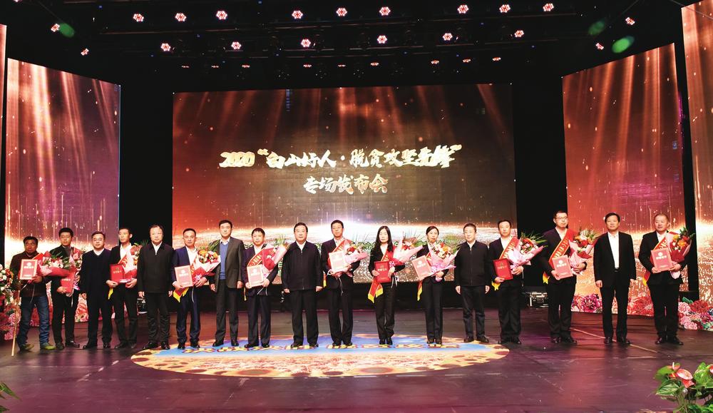 发布会现场,于海言等11人被授予“白山好人·脱贫攻坚先锋”标兵荣誉称号;王禄等23人被授予“白山好人·脱贫攻坚先锋”荣誉称号;田洪春等27人被授予“白山好人·脱贫攻坚先锋”提名奖荣誉称号。