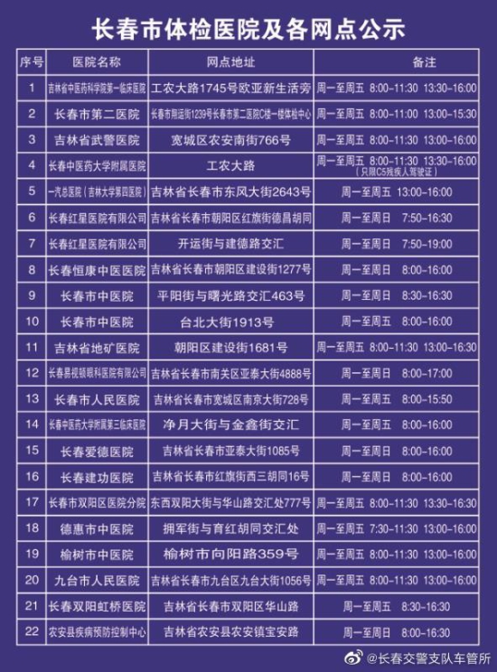 11月16日,中国吉林网从长春市公安局交警支队获悉,长春市车管所院内体检网点应其医院要求,已经撤回本医院内办理,请有体检需求的驾驶员朋友到您就近的体检网点办理体检业务,具体网点可以在手机交管12123APP中自行查询,下图也有明确标注。