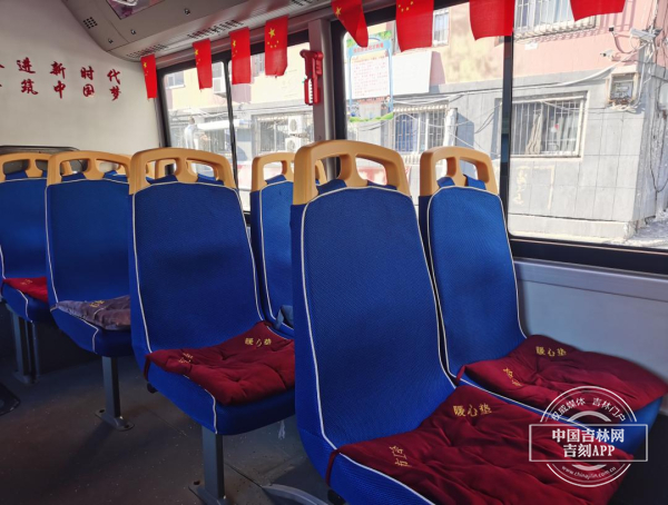 中国吉林网记者看到车内每个座位上都配备了一个由长春市工会提供的暖心坐垫,刘中男告诉记者,在公交车走完一趟回终点时,业务员都会上车检查坐垫是否有缺失和破损并且及时做调换。