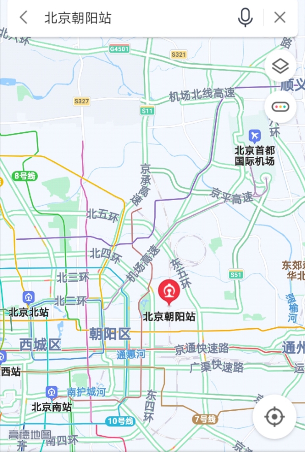 通过高德地图,中国吉林网记者看到,北京朝阳站位于东四环与东五环之间。车站附近有多趟公交线路,旅客可根据需求乘坐。