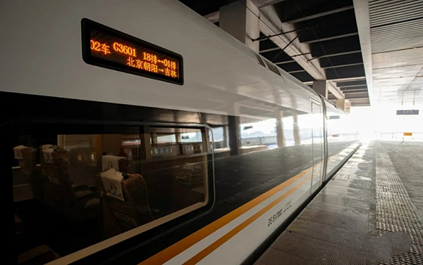北京朝阳至吉林G3601次:北京朝阳9时59始发,沈阳北12:44/12:47、长春13:58/14:01、吉林14:41终到。全程运行4小时42分钟,较原运行时间最短的北京南至吉林G239次压缩了1小时。
