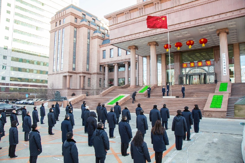 当日9时,伴随着雄壮庄严的国歌,鲜艳的五星红旗冉冉升起,迎风飘扬。参加仪式的干部职工神情庄严肃立,齐唱国歌。