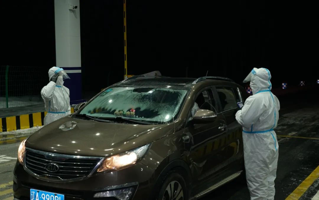 疫情期间,长川边境检查站严格按照防疫要求,全面加强进出人员的身份核查和车辆人员防疫消杀工作,全力确保警营内部安全稳定。当夜幕降临,车流量大幅下降,查缉区没有了白天的喧闹,呼啸的寒风夹杂着飘落的雪花在查缉区肆意狂舞。防护服可以阻挡病毒,却无法阻挡刺骨的寒风。防护面罩上凝结的冰雾,已经让我们无法看清检查站民警们的脸庞。无论环境多么恶劣,他们依然按照“三班两运转”的勤务模式始终运作,长川边境检查站的民警们用实际行动践行着忠诚誓言。