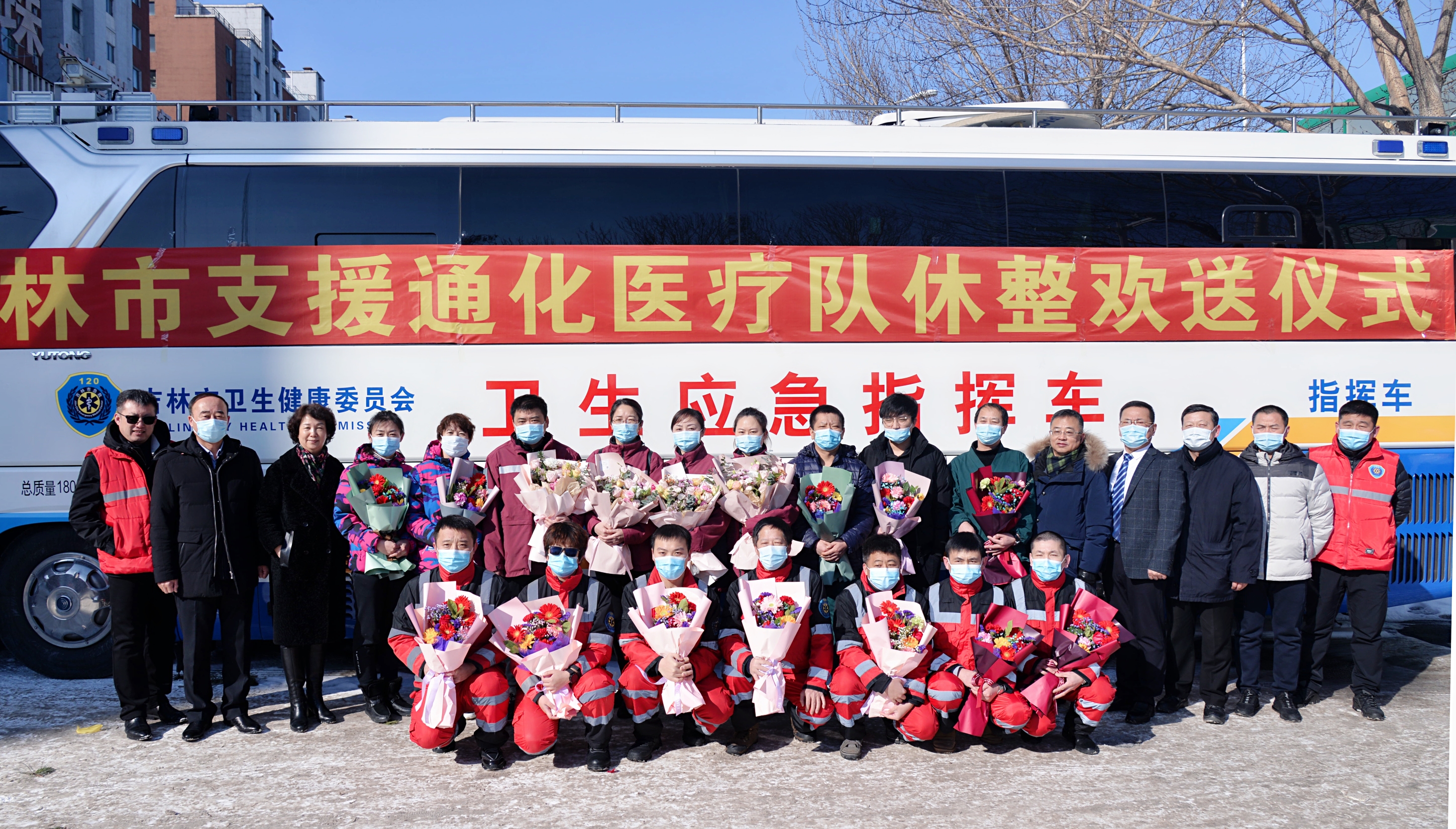 3月6日9时30分,吉林市举行支援长春市、通化市抗击疫情医务人员返岗仪式。最后一批16名医务人员结束集中隔离休整,返回工作岗位。