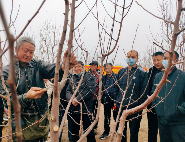 小四平镇太阳村的果树种植基地里,漫山遍野的果树铺展开来,孕育春的希望。50位果农拿着剪刀、纸和笔早早来到田间等候。“农民朋友们在修剪过程中一定要遵循果树生长的规律,随树造形,因枝修剪,修剪后的果树呈纺锤形,向外延展。如果像笤帚一样抱着生长,通风、透光性较弱,不仅坐果少,还影响果子的品质。”张教授一边用通俗易懂的语言讲解修剪注意事项,一边为果农现场示范。