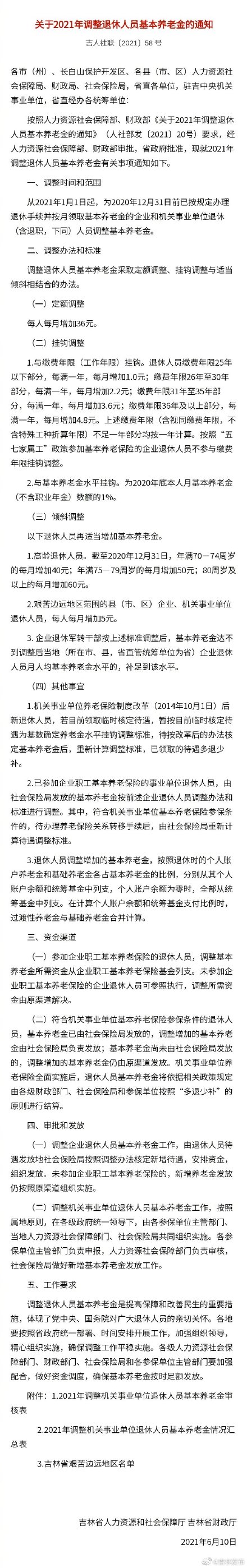 中国吉林网从吉林省人社厅了解到,按照人力资源和社会保障部、财政部《关于2021年调整退休人员基本养老金的通知》(人社部发〔2021〕20号)要求,经人力资源和社会保障部、财政部审批,省政府批准,吉林省2021年调整退休人员基本养老金修改了!