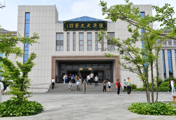 媒体采访团首先来到张笑天文学馆,文学馆共有两层,一层为文学作品展区,二层为影视作品展区。