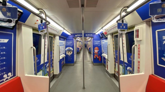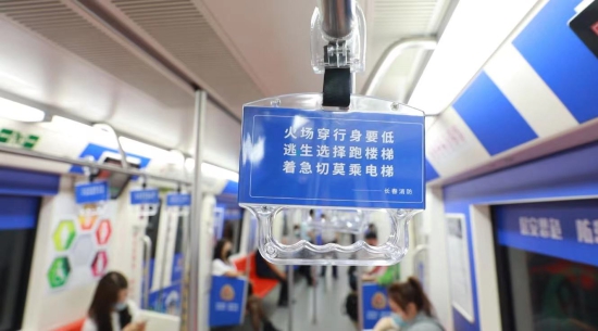 活动当天,社会各界消防志愿者共同参观体验消防宣传主题地铁专列。该专列具有鲜明的消防主题特色,集知识性、趣味性、观赏性、教育性为一体。车厢内以“火焰蓝”元素为设计主基调,宣传内容涉及常见火灾防范、初期火灾扑救、逃生自救常识等,车厢门和厢体设计了消防卡通形象和各类常用的消防安全知识,车把手展板上印有便于广泛传播的宣传警示语,每个窗户对应一个消防知识安全要点。通过这样的科普知识宣传,让乘客在乘车时,能够利用碎片化时间学习到消防安全知识,提高安全意识。