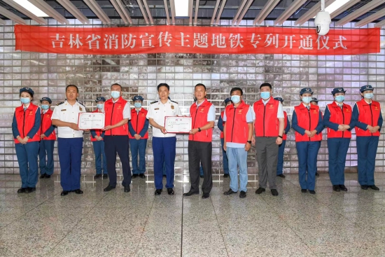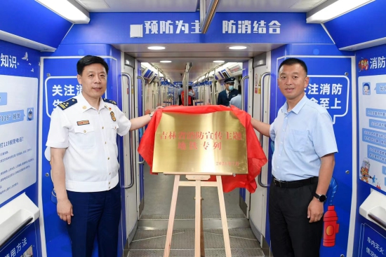 吉林省消防救援总队、长春市消防救援支队多次与长春市轨道交通集团开展座谈研讨,在车厢设计、列车线路、宣传内容等多个方面深入研究,将消防宣传知识有效地融入地铁文化,经过近三个月的努力,打造了消防宣传主题地铁专列。吉林省消防救援总队总工程师靳威、长春市消防救援支队支队长张建军出席消防宣传主题地铁专列开通仪式,靳威总工程师、长春轨道交通集团总经理江涛共同为消防宣传主题地铁专列揭牌,标志着消防宣传主题地铁专列正式开通。聘请长春轨道交通集团总经理江涛、安保部部长刘健为消防志愿者,共同参与消防安全建设,着力推进社会化消防宣传工作,靳威总工程师、张建军支队长为两人颁发聘书。
