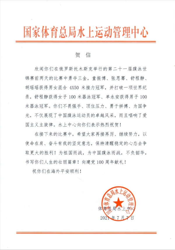 在7月5日比赛首日,吉林省运动员胡瑶瑶、王志浩在男女4X50米蹼泳混合接力比赛中与队友通力合作,赢俄罗斯0.17秒,惊险的赢得了冠军,并创下了新的世界纪录。胡瑶瑶是所有参赛女队员当中成绩最快的,为中国队该项目夺冠立下头功。男女4X50米蹼泳混合接力冠军,是中国在参加世锦赛历史上首次获得该项目冠军。