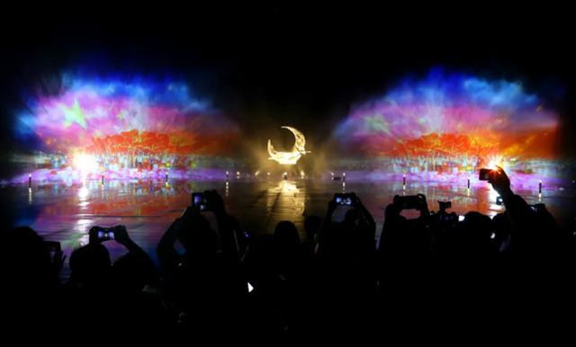 夜间水景灯光秀,每周周五、周六、周日及节假日晚间开放,晚19:30分—20:10 ,演出时间预计40分钟。