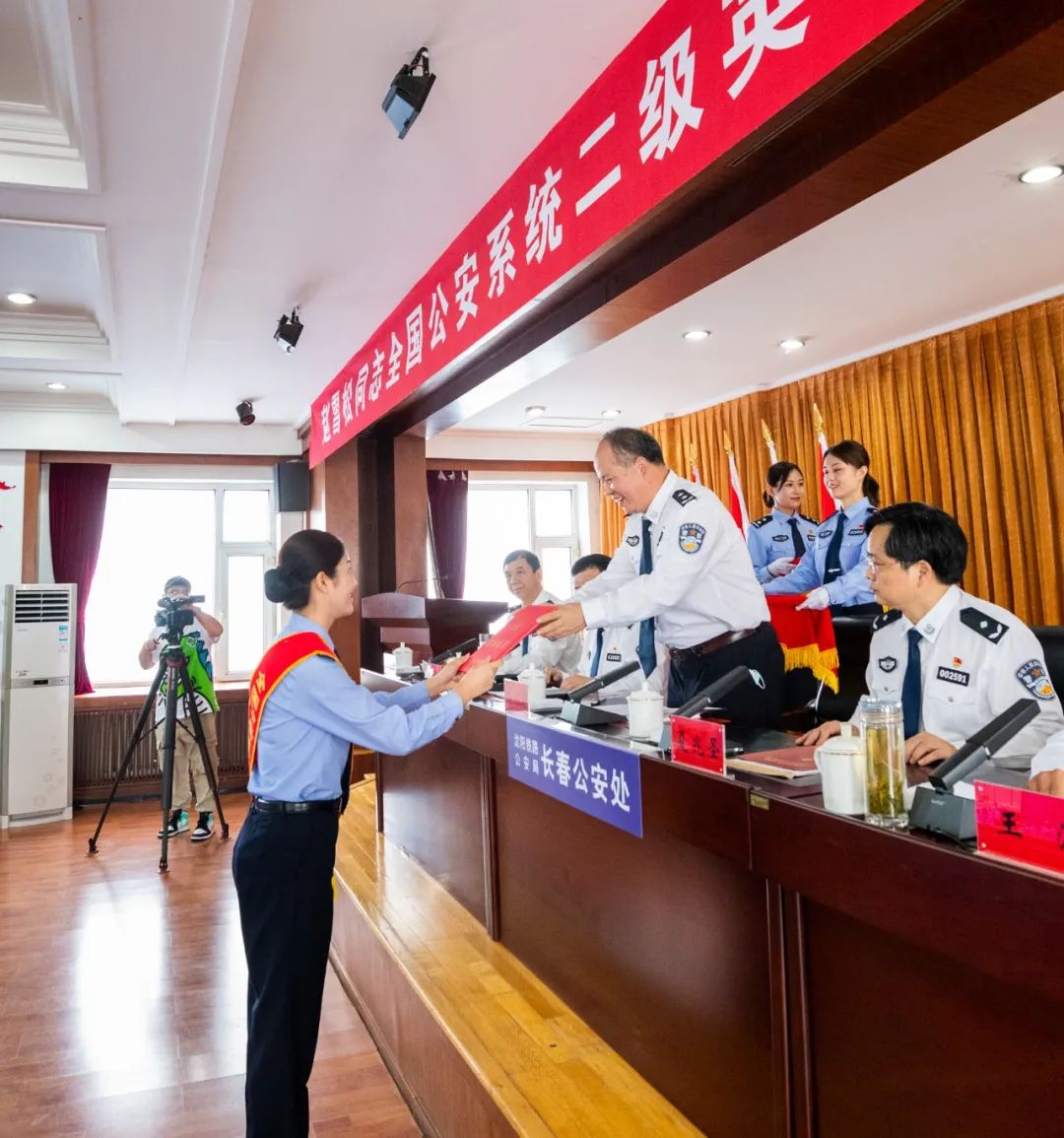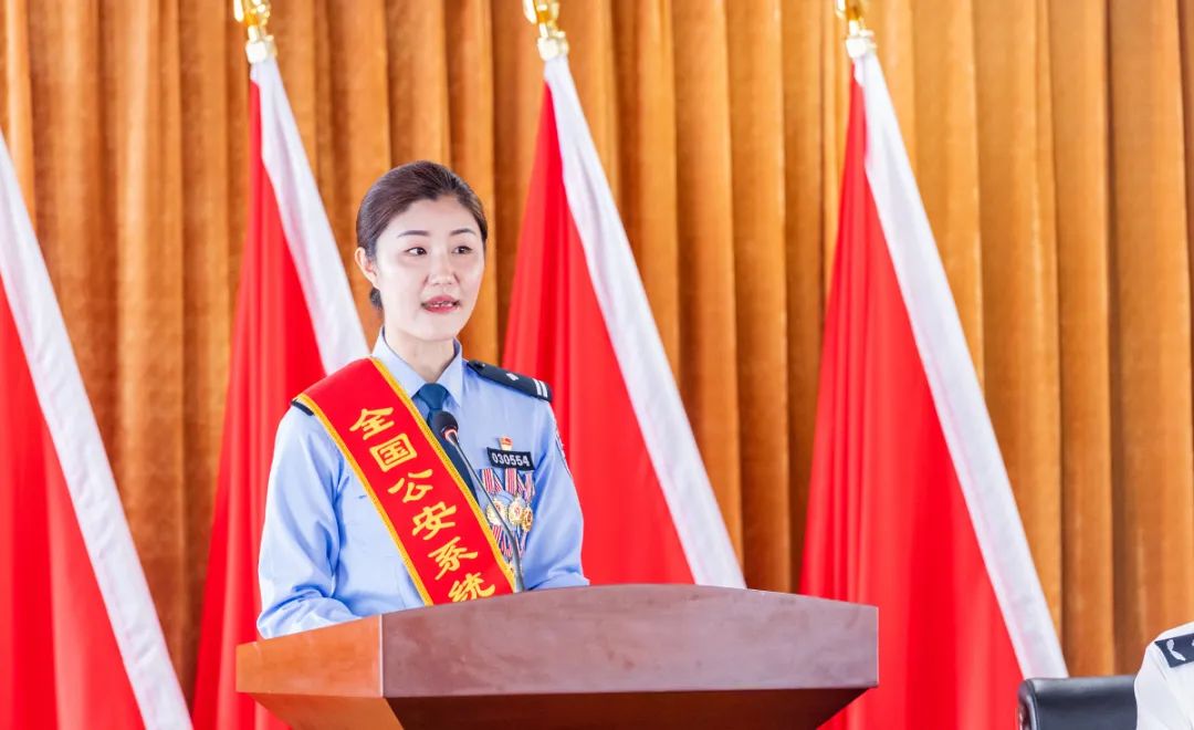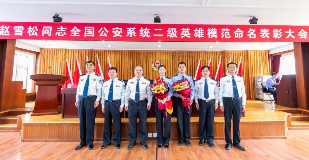 赵雪松同志作了表态发言。她表示,这份沉甸甸的荣誉既是一种认可,也是一种激励、更是一种鞭策。在今后的工作中,将以实际行动捍卫英模精神,努力钻研业务,不断提高能力素质,将毕生精力全部奉献给崇高的人民公安事业!