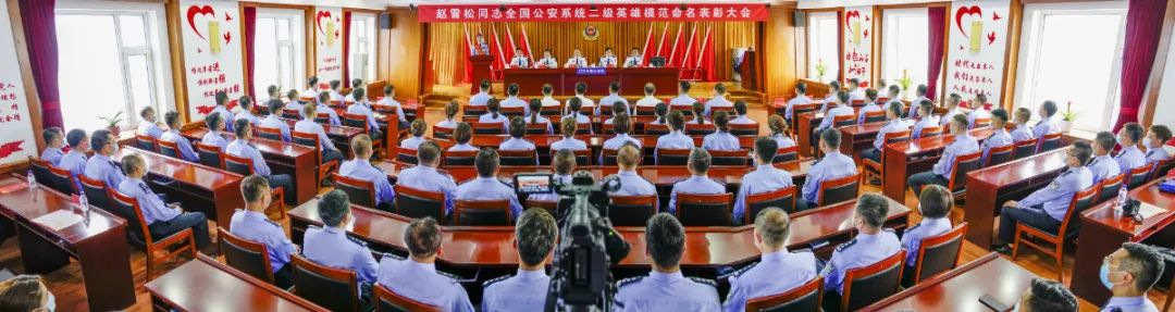 大会在雄壮的国歌声中拉开帷幕。会上,宣读了赵雪松同志被授予全国公安系统二级英雄模范的命令。公安部铁路公安局党委委员、纪委书记李永实为赵雪松颁发全国公安系统二级英雄模范荣誉证书、奖章和奖金。