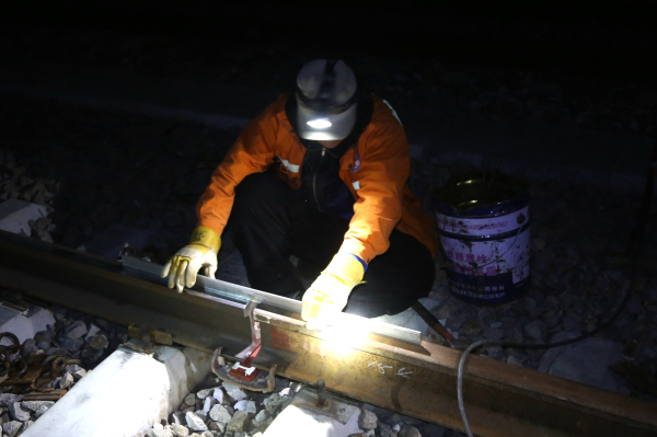 2时,“天窗”修命令下达。7台电动扳手上道后,均匀散开,纷纷打着火,开始松卸线路上的扣件。钢轨切割机作业时喷射的钢花在夜色中分外耀眼。