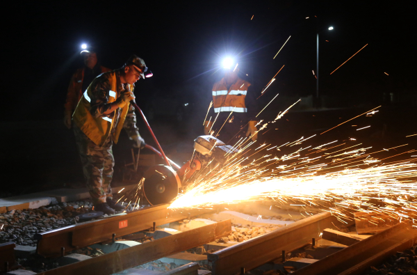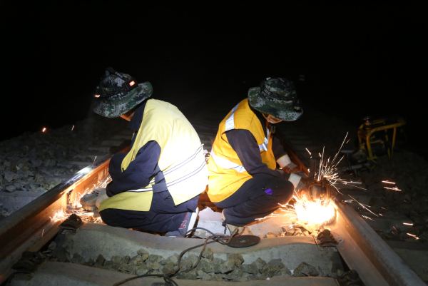 5时,180分钟的焊轨施工作业顺利结束,线路正点开通。