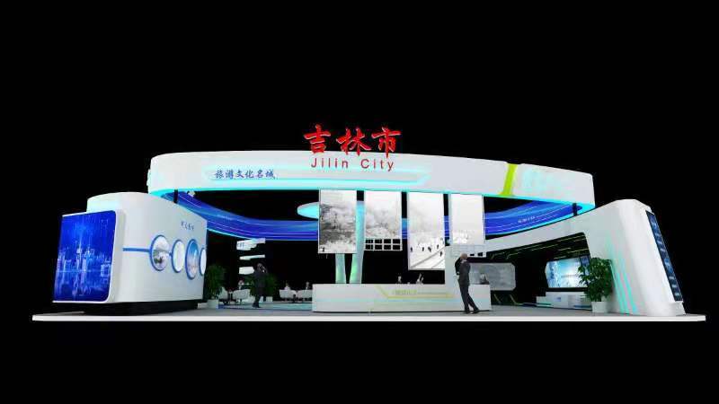 吉林市展区以打造圆融大气、体现科技创新、具有高辨识度和强大冲击力的特装效果为目标,以展示吉林市“四六四五”发展战略和特色优质产品为核心,采用流线型悬浮大开敞设计风格,辅以裸眼3D、透明投影,VR体验等声、光、电特效手法,充分利用既定的360平方米展位空间,按照外部展示四个城市定位,内部设置六大产业集群、四大中心板块、五个县域经济增长极以及特色产品展示等功能区进行布局,突出宣传吉林市经济社会发展成就、投资环境、重点产业项目、重点企业和特色名品等内容。