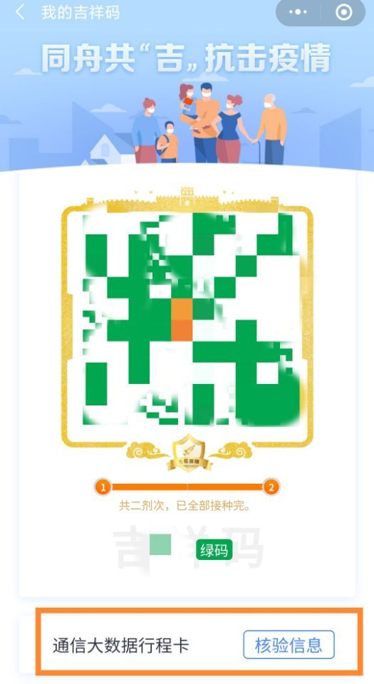 第二步:吉祥码下面可看到“通信大数据行程卡”,点击核验。