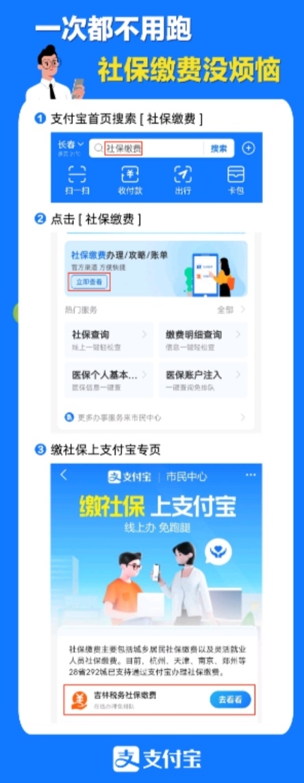 10月9日,中国吉林网从支付宝方面获悉,本月起,吉林人可以通过支付宝搜“社保缴费”,或在支付宝市民中心的社保频道完成自助缴费。