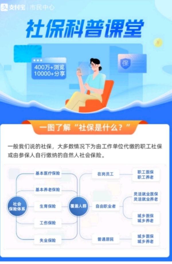 中国吉林网了解到,自然人社会保险按照参保人群和险种可分为城乡居民养老保险、城乡居民医疗保险及灵活就业人员养老保险、灵活就业人员医疗保险。