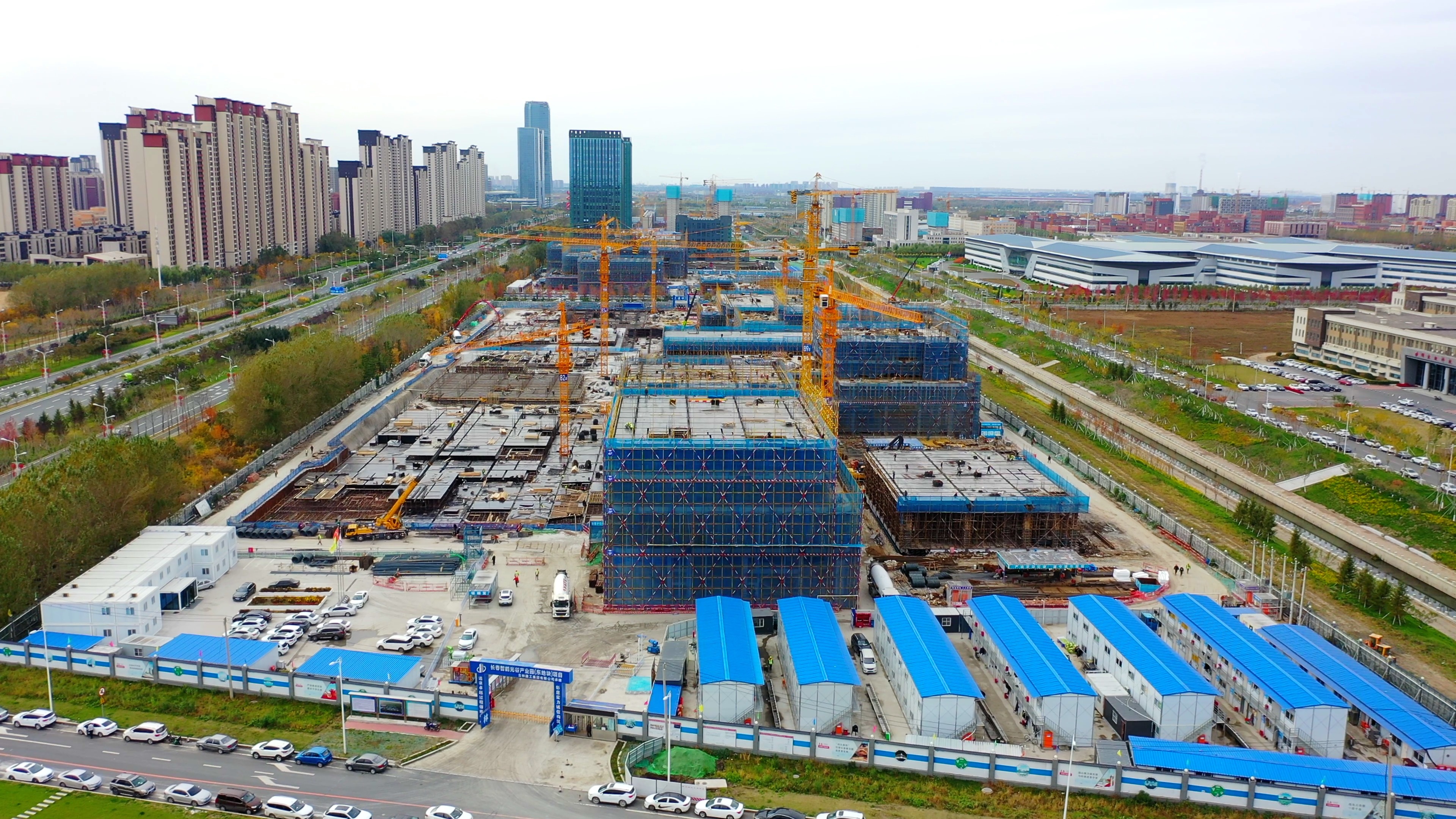 金风飒飒,秋景如画。深秋时节,位于长春新区北湖科技开发区的长春智能光谷产业园项目现场紧张忙碌,施工建设正在如火如荼进行。