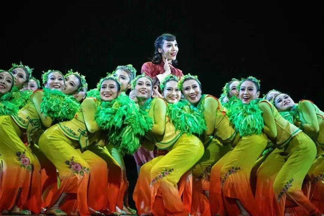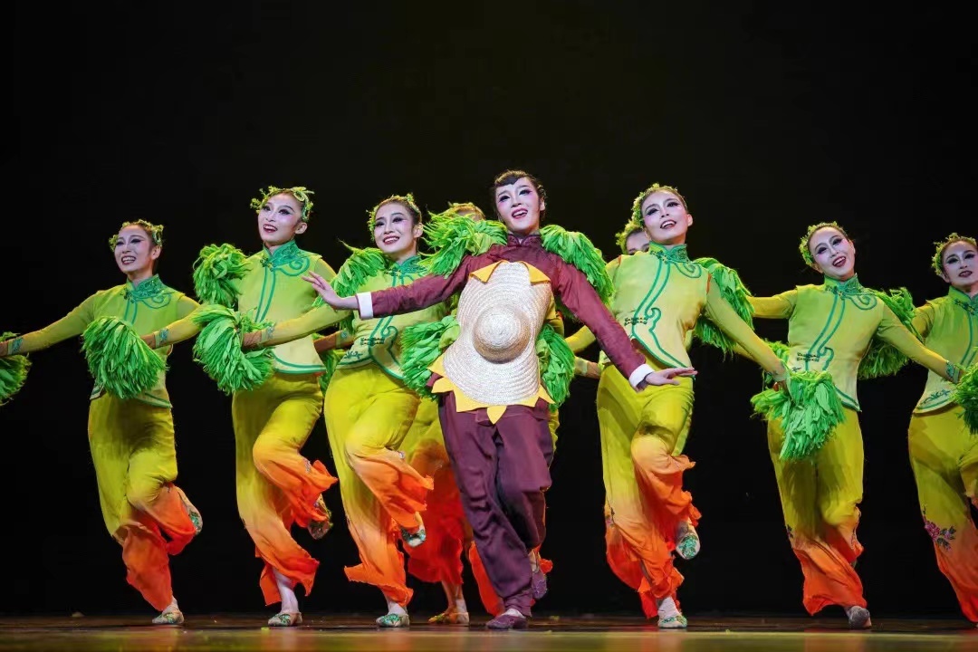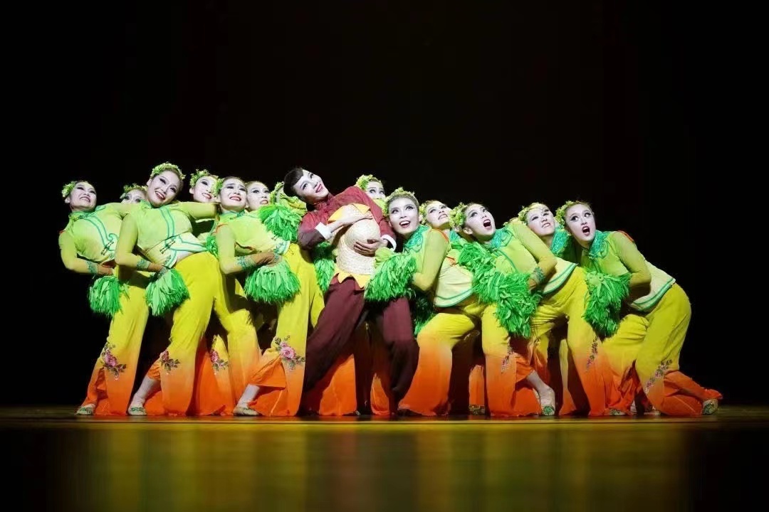 长春人文学院原创的舞蹈作品《姥姥的田》,厚植于东北地区以农田、粮食为构成的“黑土文化”,以吉林地区独有的东北“袖头秧歌”为素材,利用现代手法,将源于冬天寒冷缩手而舞的袖头秧歌进行创造性转化、创新性发展,表达出时光流逝下东北稻谷的拟人化形象。以稻谷为主观视角,作品借其生长循环的规律诠释姥姥成长的过程,映射出姥姥不同的人生阶段与转折。同时,作品还创新性地使用“绢帽”道具,通过风格化动作与道具运用,完成了东北女人的典型形象塑造。以此表达人与土地之间“耕耘—养育—反哺”的深厚情感,反映出东北黑土地上的人文情怀。