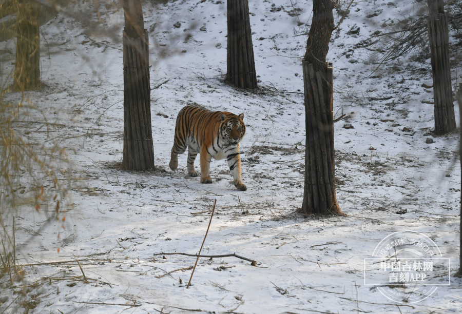 老虎们有的在树下摆出架势、有的站在树旁磨爪子、有的互相追逐、有的玩起了捉迷藏……尽情展现“丛林之王”的风范。