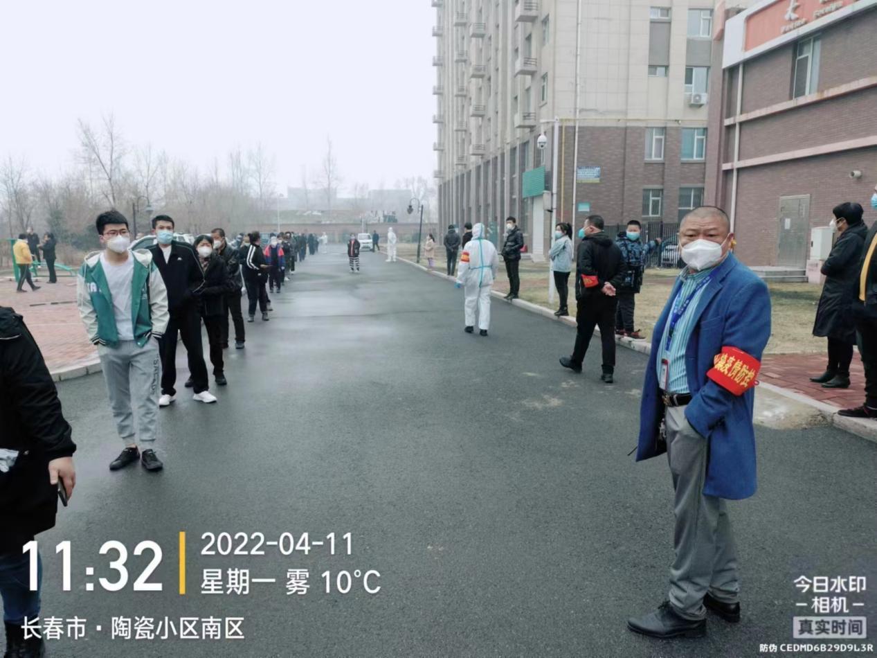 在开展全民核酸采样阶段,张国义带领着服务站的工作人员,配合社区维持现场的秩序,敦促做完核酸检测的居民立即返回家中,面对居民的不理解、抱怨甚至是责备,他都会细致耐心地解答。一次小区内核酸检测有序进行时,一位精神病人突然发病,手里挥舞着一把刀冲到楼下,吓得医护和居民纷纷躲开。情况危急之下,张国义挺身而出,将精神病人挡在身前,并告知工作人员立即报警。在其家属的安抚下,精神病人的情绪稳定后被带离了现场,检测秩序又重新恢复起来。坚实的臂膀,铸就了铁骨的脊梁,在保护居民的立场上,他责无旁贷,更扛起了使命与责任。