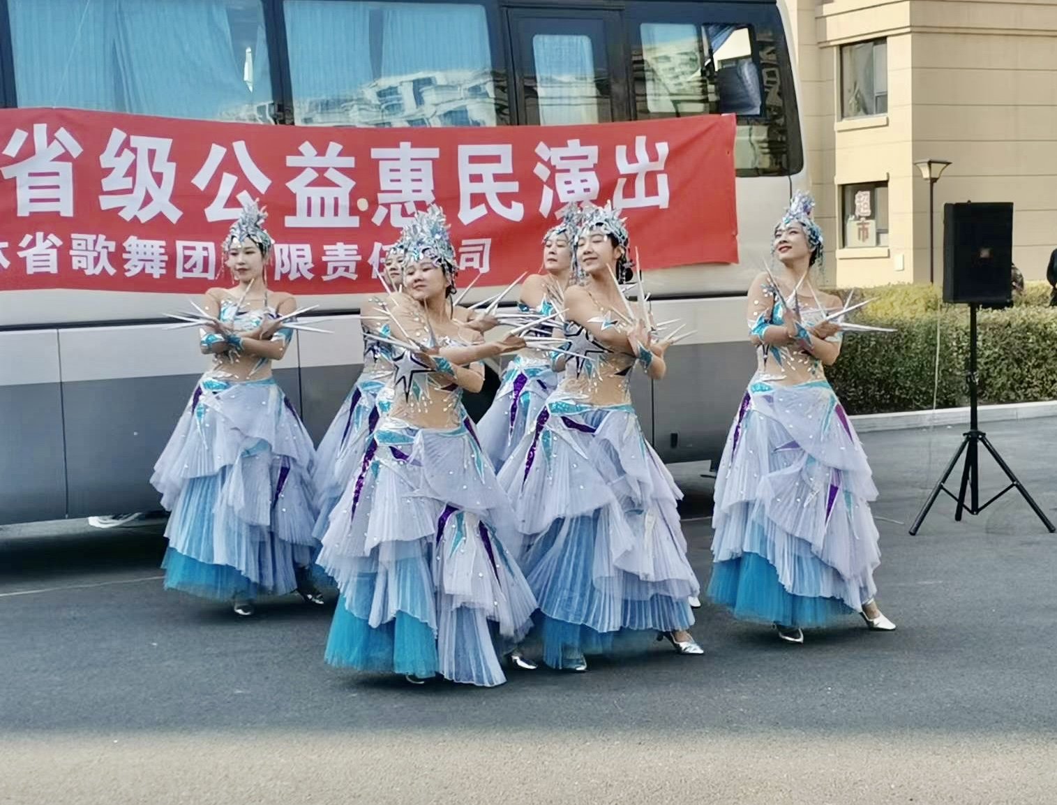 在演出现场,吉林省歌舞团专门打造了一份内容充实的节目单——有生动诙谐的魔术表演、舞蹈,还有一系列歌唱祖国和人民、展现美好生活的歌舞表演,以及具有吉林地域特色的少数民族舞蹈表演。丰富多彩的节目内容让居民看得十分出神,现场掌声不断、热闹非凡。