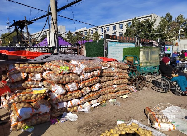 “土豆便宜了,50块钱一袋,买就送到家。”一位菜商大声吆喝着。