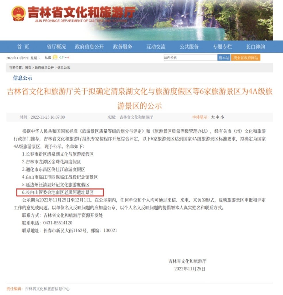 长白山老黑河遗址景区拟被评定为国家4A级旅游景区,长白山景区研学旅行基地被确定为“吉林省首批研学旅行基地”。长白山老黑河遗址景区和长白山景区研学旅行基地的成功上榜,标志着长白山文旅产业实现新突破。