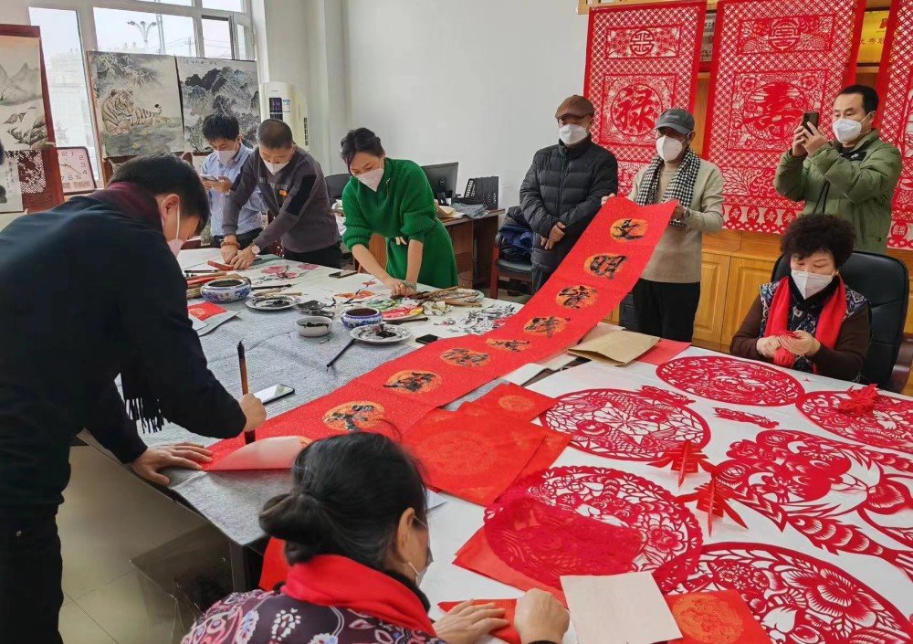 贴春联、贴“福”字是新年不变的文化习俗,在珲春市新时代文明实践中心志愿者之家,“我们的中国梦”文化进万家志愿服务活动正在火热进行,300余幅作品铺满展厅,让“年味”越来越浓。文艺志愿者、珲春市书法家协会会长臧运波对记者说,希望能用传统文化为即将到来的新春佳节营造欢乐祥和的氛围。
