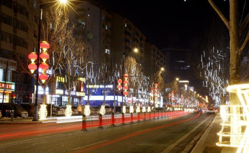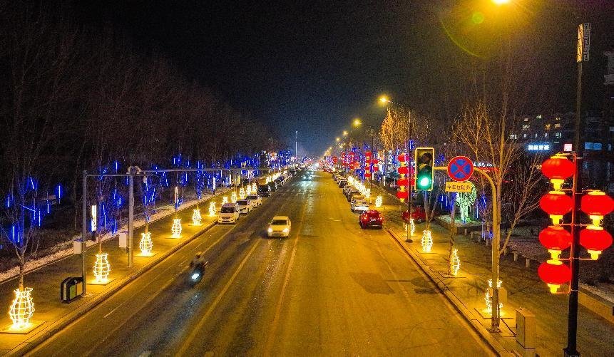 夜色里的长春新区,华灯璀璨,光影迷人,一串串、一排排红灯笼和各种颜色的彩灯,高高地挂在树上、灯柱上、楼体上,远远望去如点点繁星,充满了新春节日的氛围,年味十足。这个既现代时尚,又富有烟火气和人情味的长春新区,正以昂扬的姿态走进这绚丽多彩的新时代。