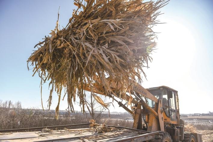 近年来,吉林省大力发展生态养殖,建立农业循环经济发展模式,促进农业固体废物综合利用。其中秸秆综合利用工作取得实质性进展,2022年全省秸秆综合利用率已经达到78.9%,居全国前列。图为2月16日,在长春市九台区东湖街道腰站村,隆达兴养殖农民专业合作社农民操作农机将玉米秸秆装车。