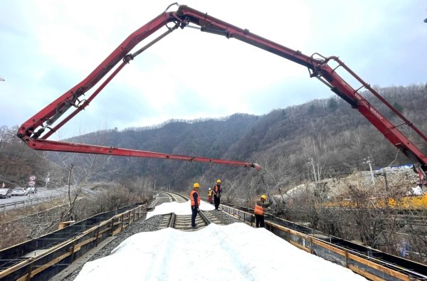 面对施工现场地处既有铁路高边坡、紧邻汤河、雨水频繁、封锁时间有限等不利因素,施工当天项目部及分部主管领导和专业管理人员跟班督导把控施工安全。参建职工严格执行标准化作业不走样,严格施工过程中的安全管控,对砼泵车、汽车吊等大型机械设备实行了一机一人防护。同时,施工现场用防护围挡对线路实施“硬隔离”,筑起了施工的安全屏障。