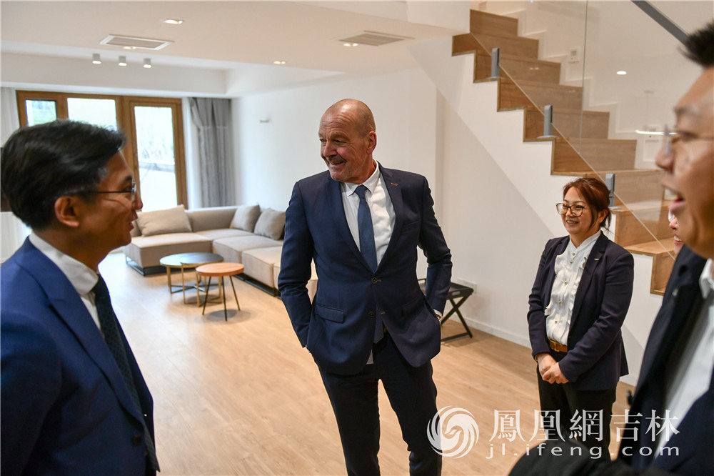 首批入住的奥迪专家参观国际人才公寓园区和部分户型。凤凰网吉林 梁琪佳摄