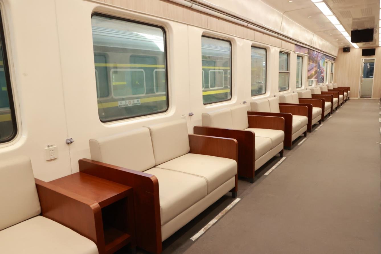 会议车厢采用会议室座椅布局,适合各种会议场景,配备高级沙发、边几、小舞台、电视机、点歌机,可以满足旅游团体的会议需求,可开展党建、团建、研学等相关活动,为游客提供交流、沟通的平台。