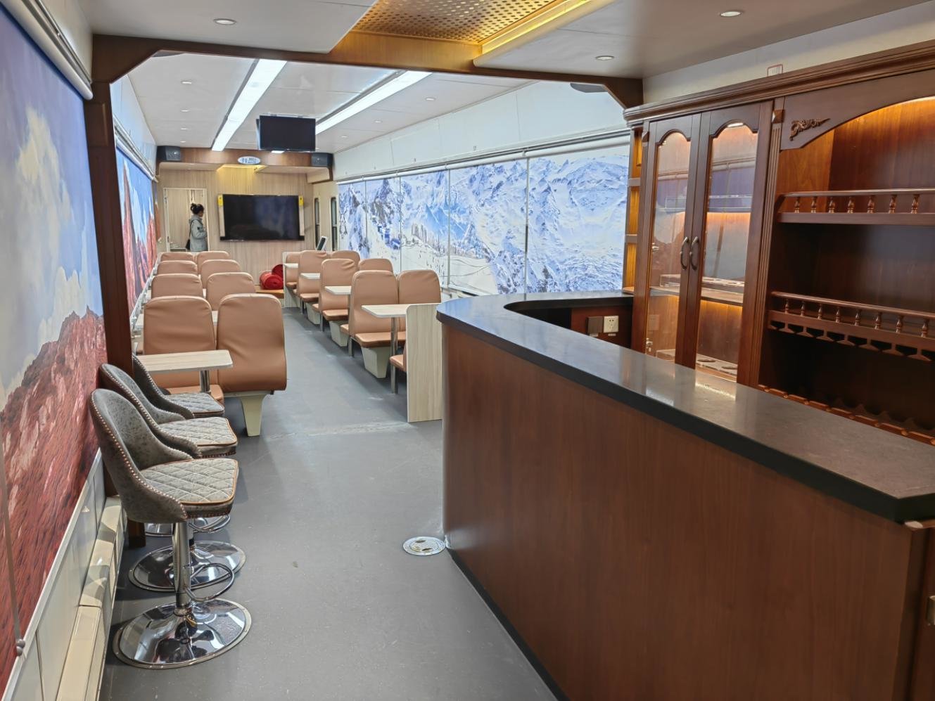 文娱车厢内配有豪华KTV包间、2间茶室包间、2间麻将室包间,满足游客们旅途中娱乐、会谈等各种需求。