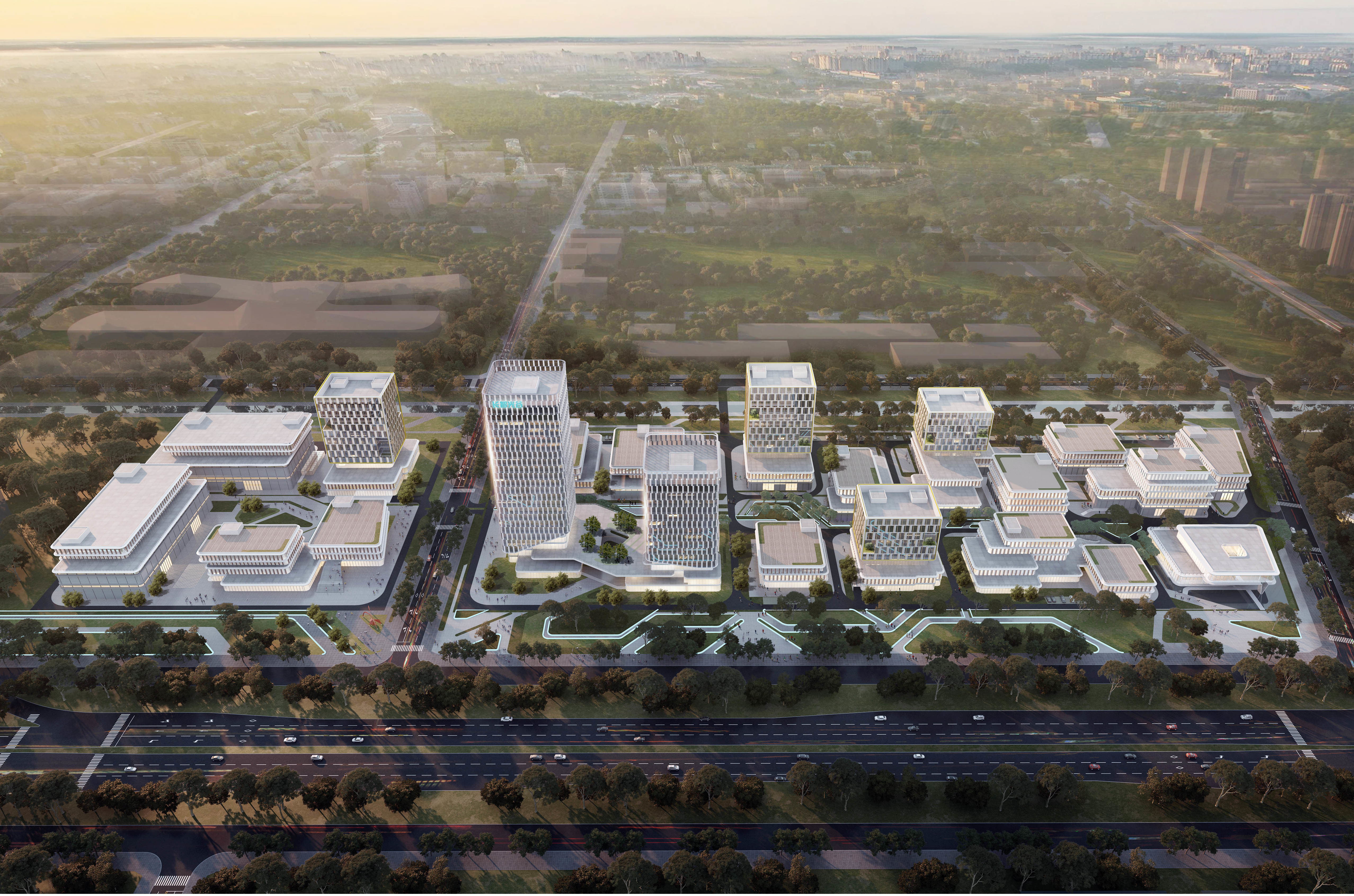 项目主体由16栋建筑组成,标准厂房及工业中心造型丰富,层次分明,打造围绕光学、化学材料产业发展的技术研发、科技成果转移转化、规模化生产的产业园区。