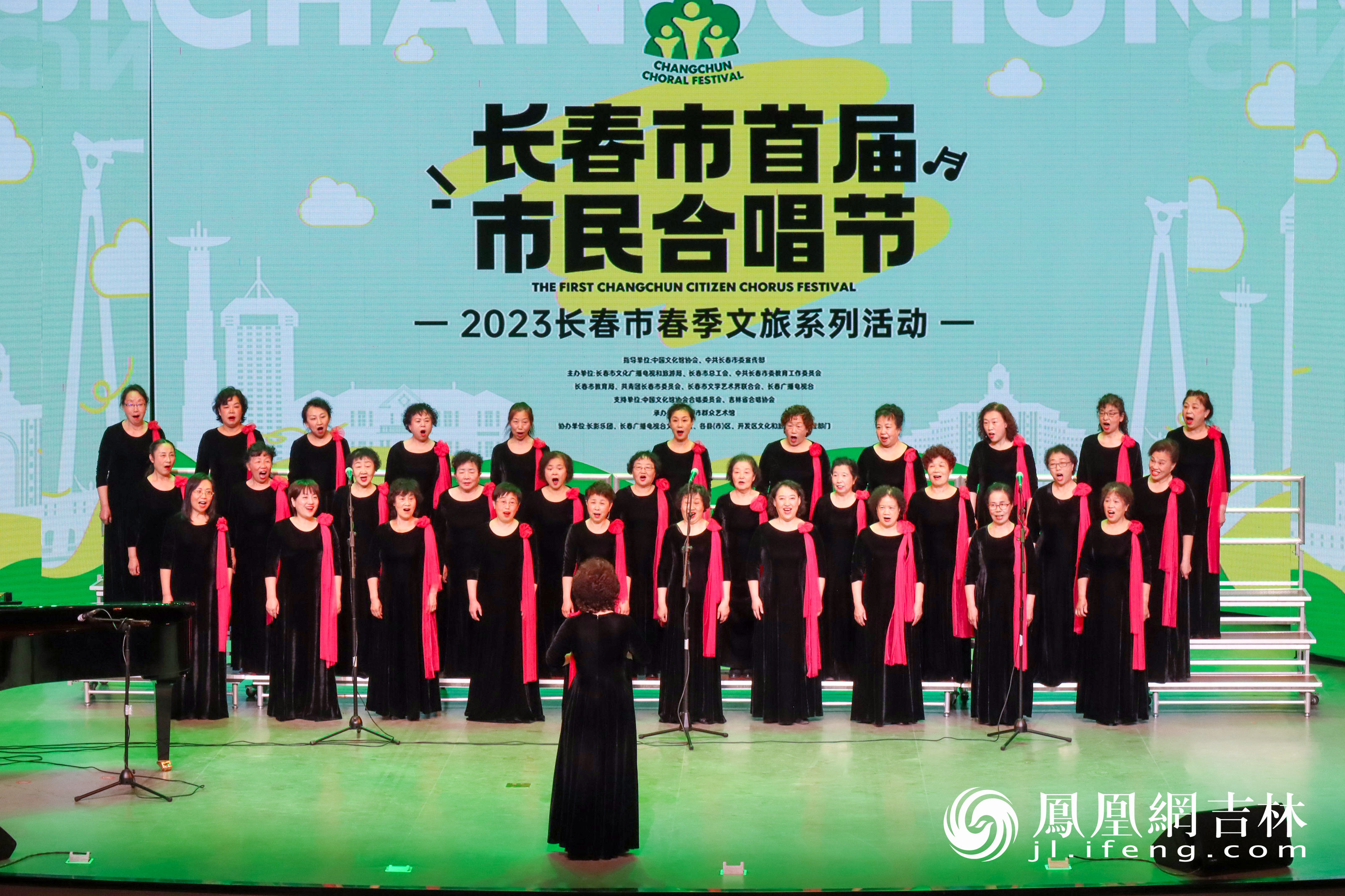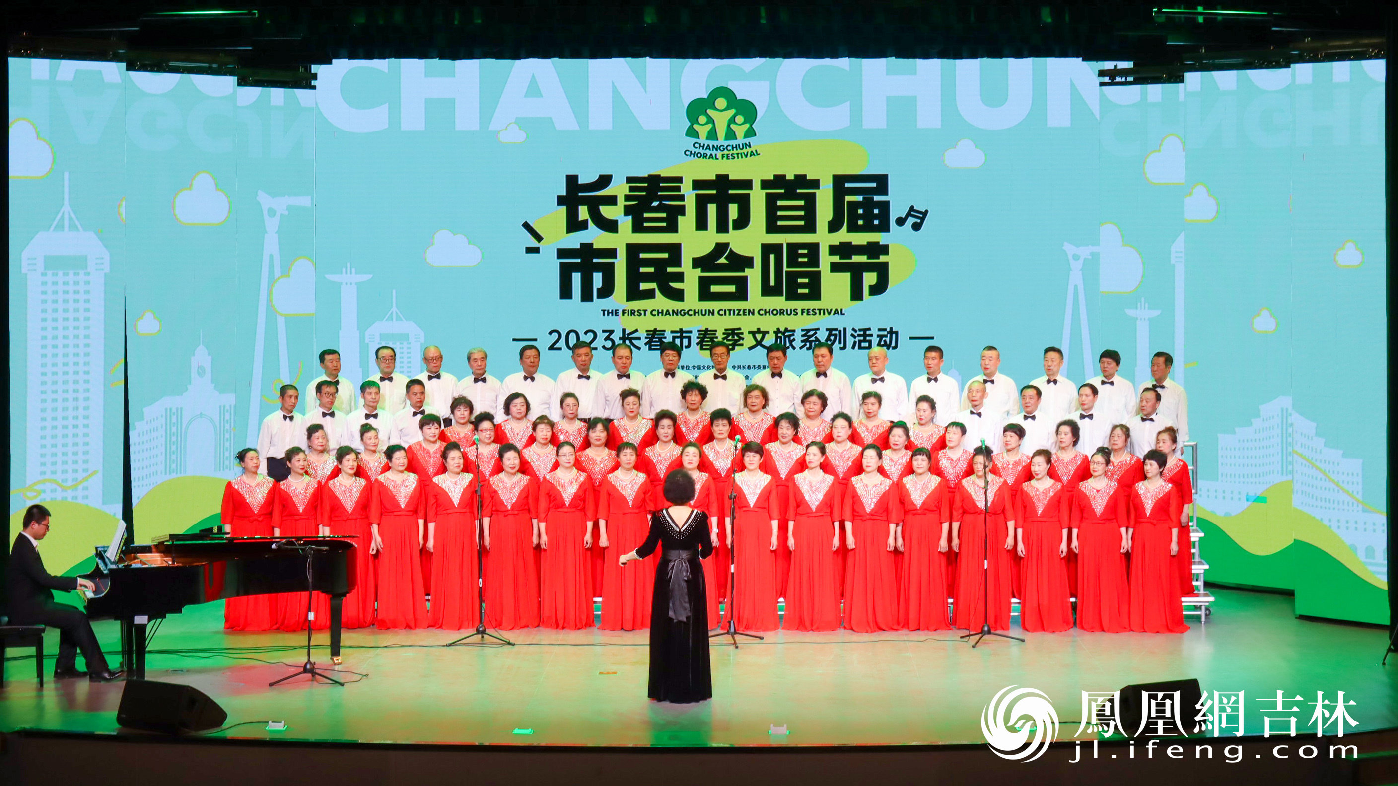 老山参合唱团演唱《彩虹》拉开了长春市首届市民合唱节展演活动序幕。 凤凰网吉林 龙晓宁/摄