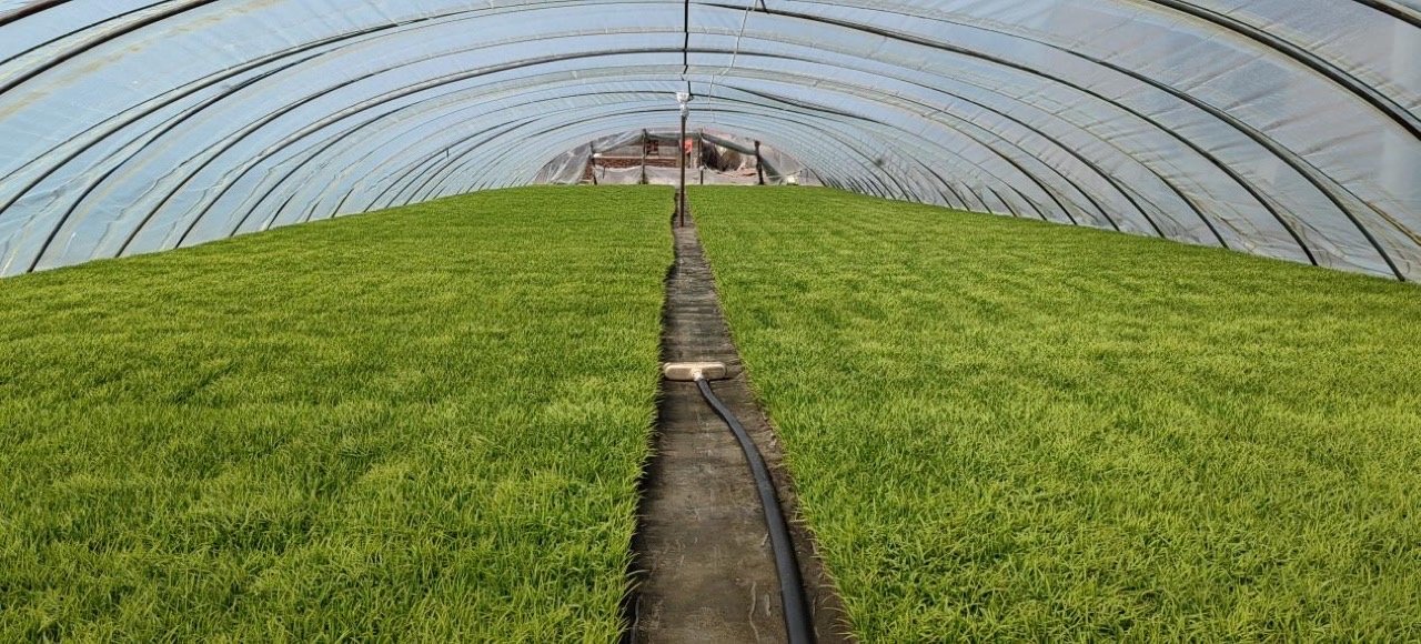 在梨树县孤家子镇大林子村9队兴盛达家庭农场水稻育秧基地内,已有10厘米高的绿油油秧苗,长势喜人,整齐茁壮。
