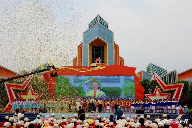 5月13日,“护苗2023·红色童话节活动”开幕式在江西赣州方特东方欲晓红色景区隆重举行。来自粤港澳大湾区以及赣州本地的少年儿童近700余人参加了开幕式。