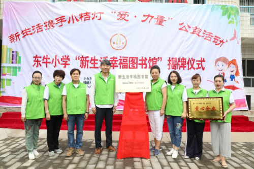 在“新生活幸福图书馆”的揭牌仪式上。新生活集团洪晙荣社长、林鳯俊专务、旬邑县的相关领导、“小桔灯”社工服务中心人员以及底庙镇东牛小学全体师生和新生活集团的爱心志愿者们参加了本次仪式。
