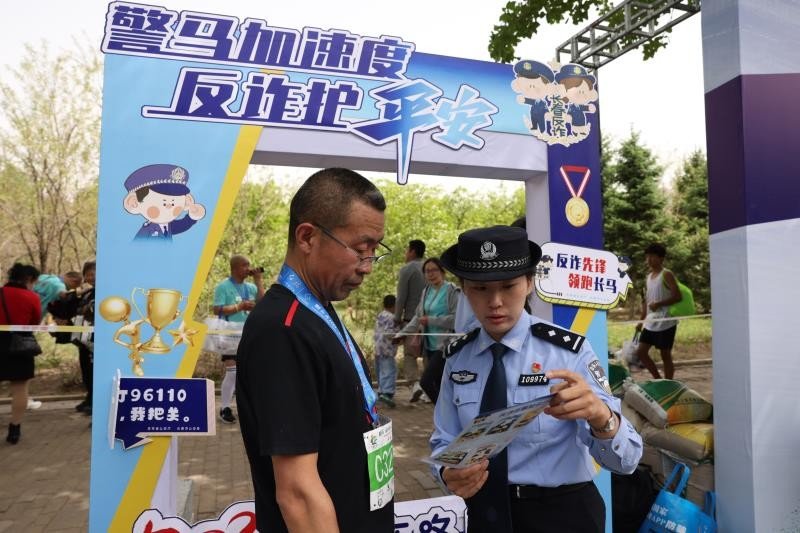活动中,民警结合马拉松赛事主题制作“警马加速度、反诈护平安”宣传板、发放反诈宣传单和礼品,以此呼吁更多运动员、跑步爱好者和群众参与到全民反诈中来。