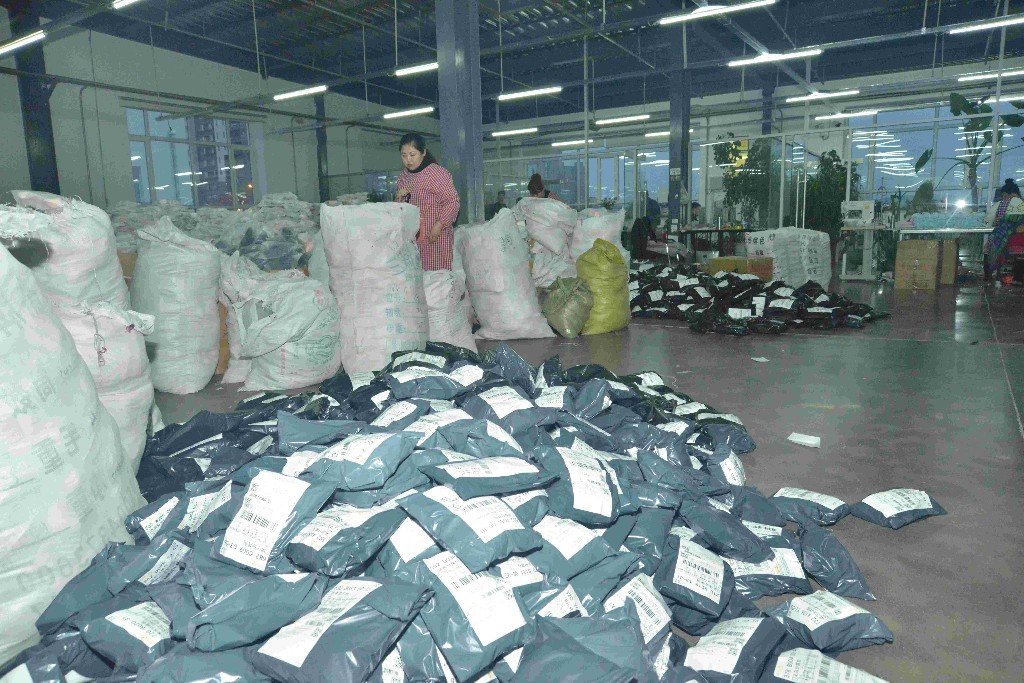 同样,在袜园得到“实惠”的还有邮政快递。辽源市邮政公司副总经理武学义说:“早期我们业务量并不大,每天发货量只有5000单左右。近年来我们的业务量也在逐年增加。去年我们进、出口邮件处理总量达到1825万单。”